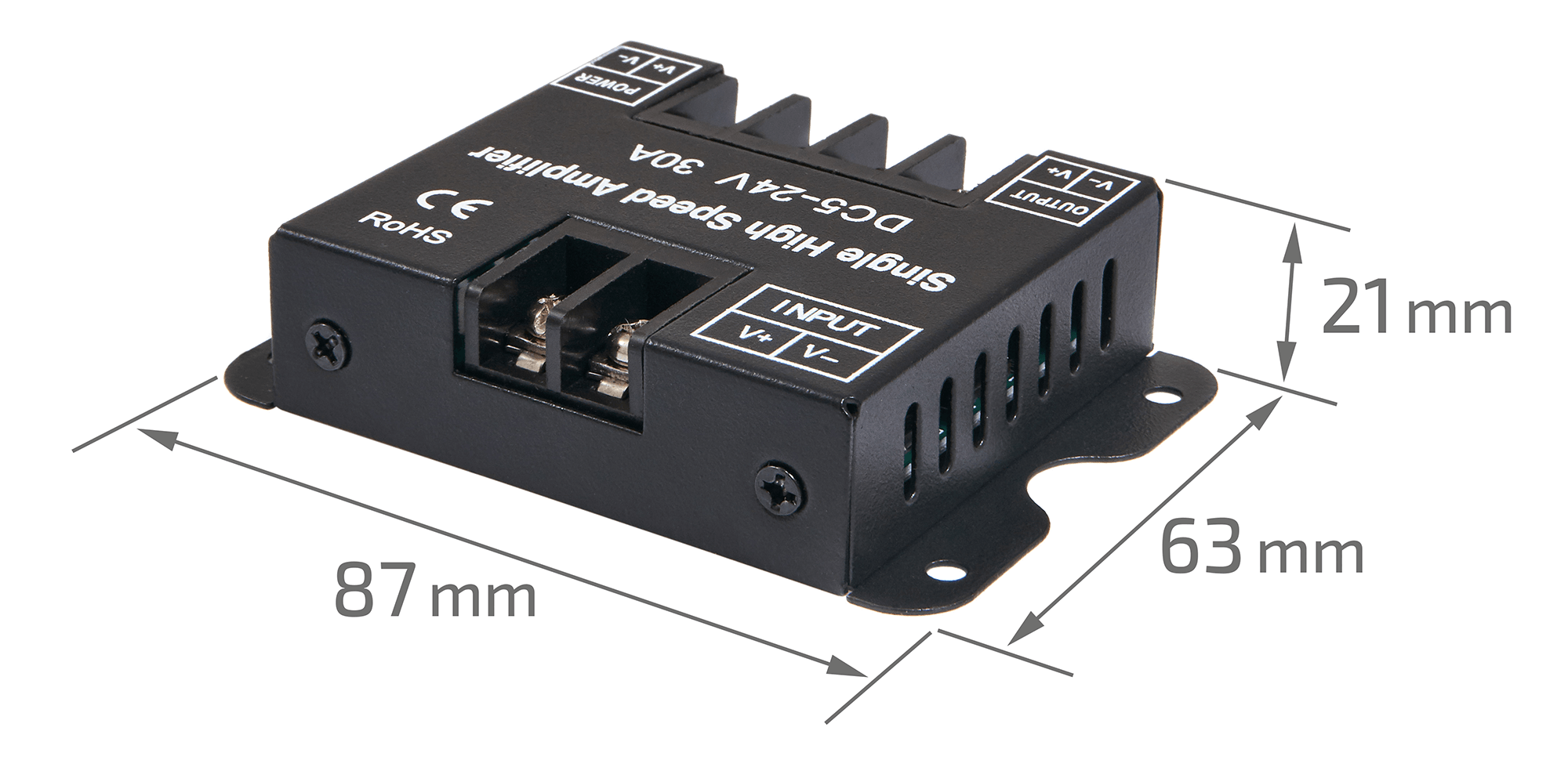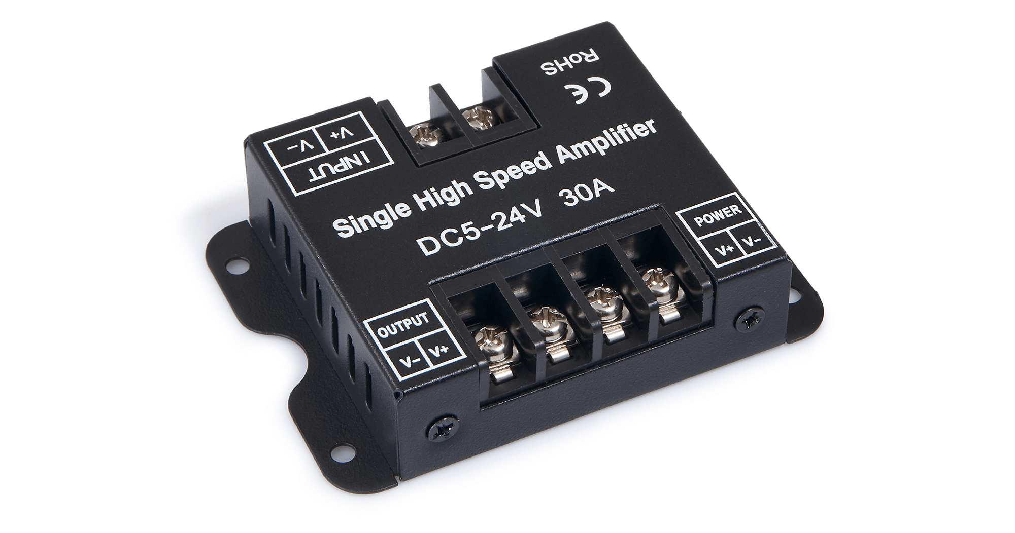 Amplificator pentru banda LED: Tensiunea de intrare/ieșire: 5-24V | Sarcina maximă de funcționare: 30A | Gradul de protecție: IP20 | Destinație: bandă LED monocoloră