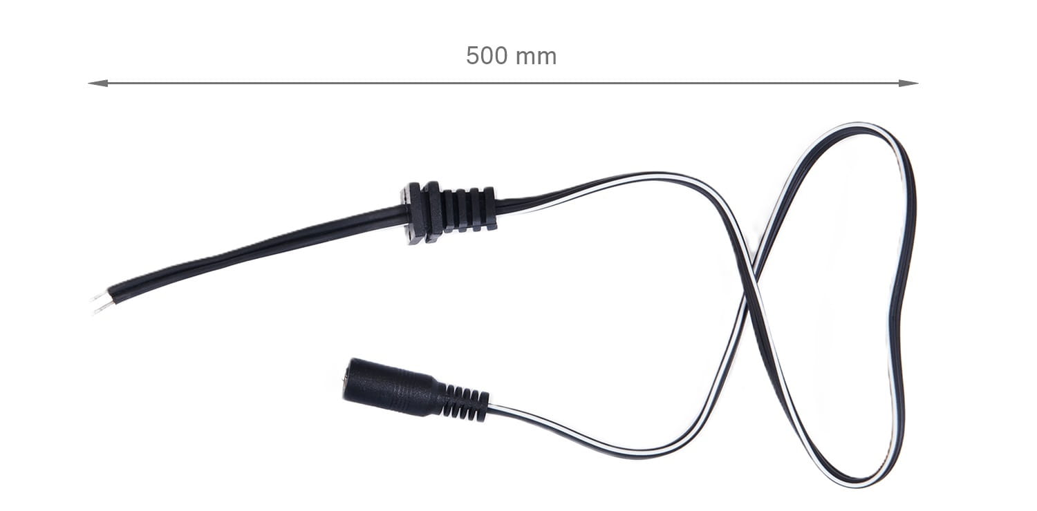 Conectorul CN 25V2 este echipat cu o mufă standard de 2.1/5.5mm, ceea ce îl face compatibil cu majoritatea surselor de alimentare disponibile pe piață. Lungimea cablului de 50 cm asigură flexibilitate și confort în timpul montajului, permițând aranjarea liberă a cablurilor în instalațiile de iluminat.