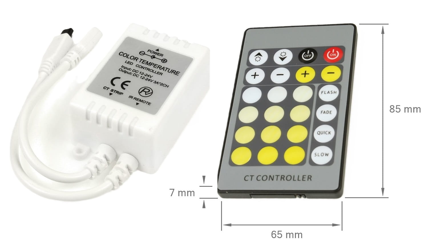 Controler pentru benzi LED: Tensiunea de intrare/ieșire: 12V | Sarcina maximă de funcționare: 3A*2 | Gradul de protecție: IP20 | Modul de comunicare: Infraroșu (IR) | Destinație: bandă LED MULTIWHITE