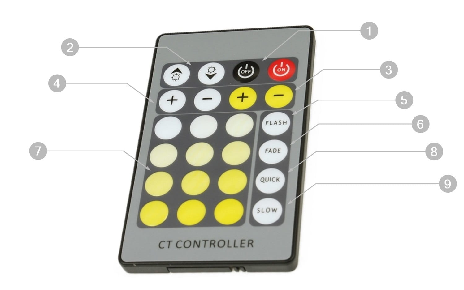 Telecomanda cu infraroșu este unul dintre cele mai importante elemente ale controlerului. Datorită acesteia, utilizatorul poate regla intensitatea luminii, schimbând între diferite nuanțe de alb. În plus, controlul prin telecomandă este confortabil și intuitiv, ceea ce îl face ideal pentru persoane de toate vârstele.