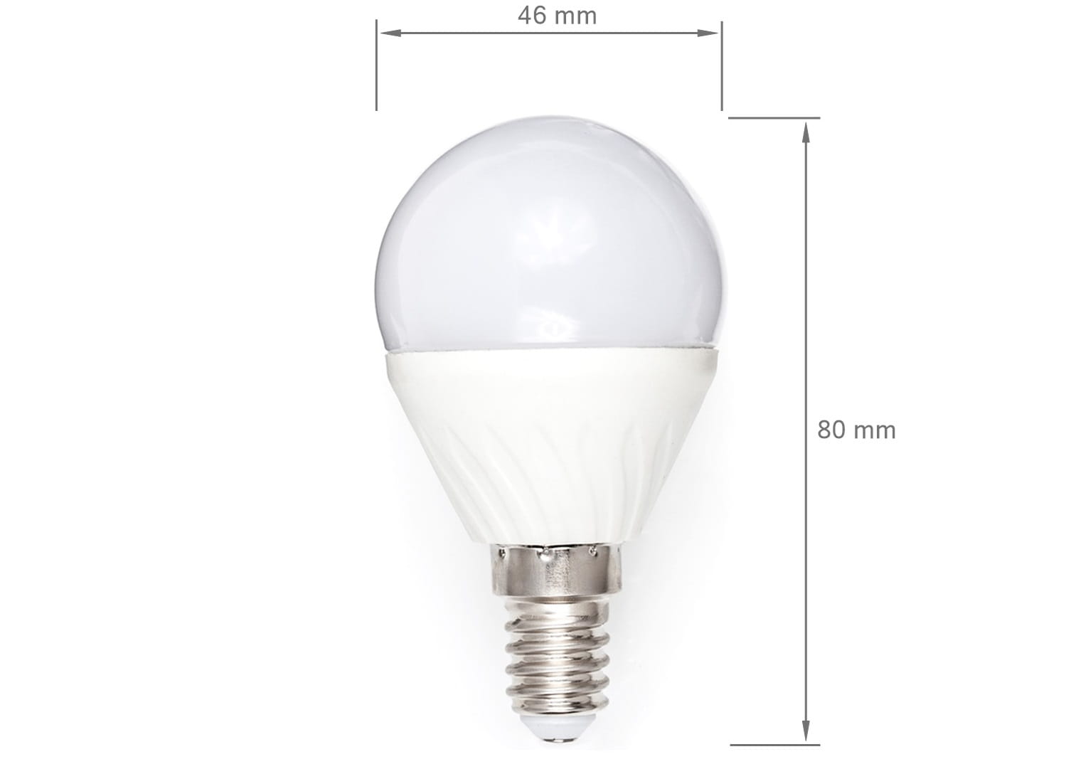 Becul LED E14 8W G45 - Alb neutru (4500K) are dimensiuni compacte, ceea ce îl face ușor de instalat în multe tipuri de corpuri de iluminat. Soclul său standard E14 se potrivește majorității corpurilor de iluminat disponibile pe piață, astfel încât poate fi montat fără probleme în instalații existente. Dimensiunile becului sunt: 46x80 [mm]