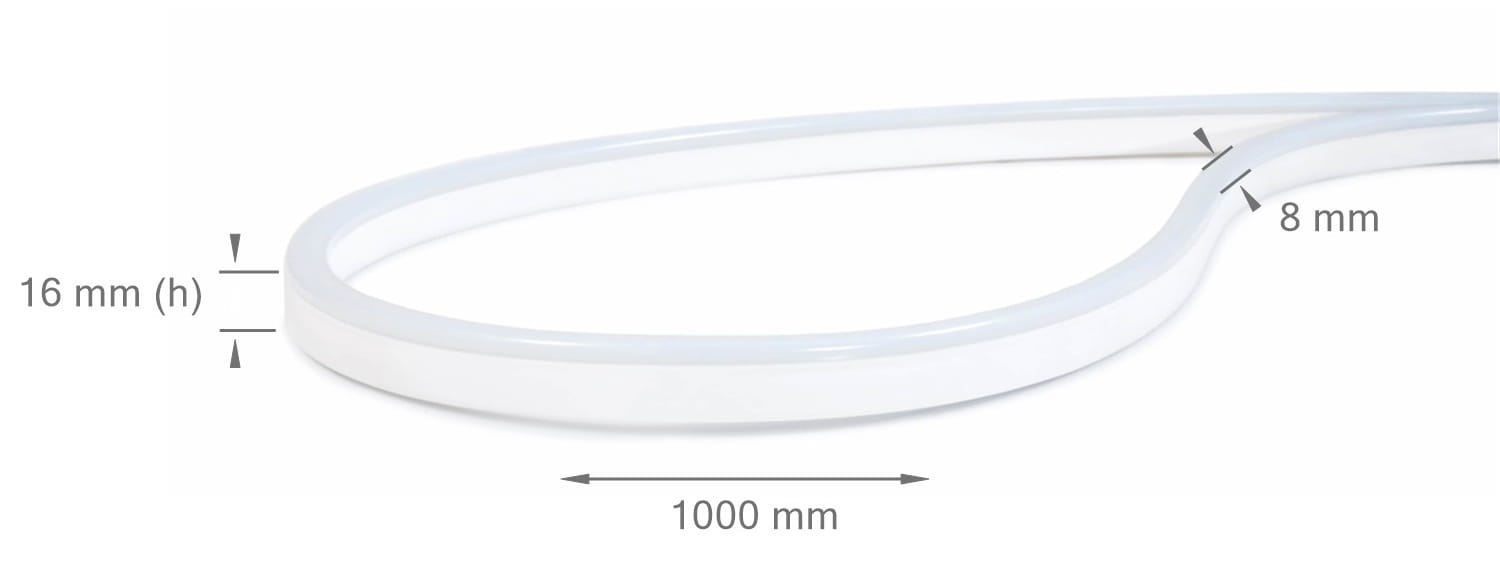 Banda LED are o lungime standard de 1 metru, ceea ce permite adaptarea ușoară la nevoile individuale ale utilizatorului. Lățimea benzii este de 8 mm, permițând montarea discretă în diverse locuri, fără a afecta estetica spațiului. Grosimea minimă a benzii facilitează montajul în locuri greu accesibile.