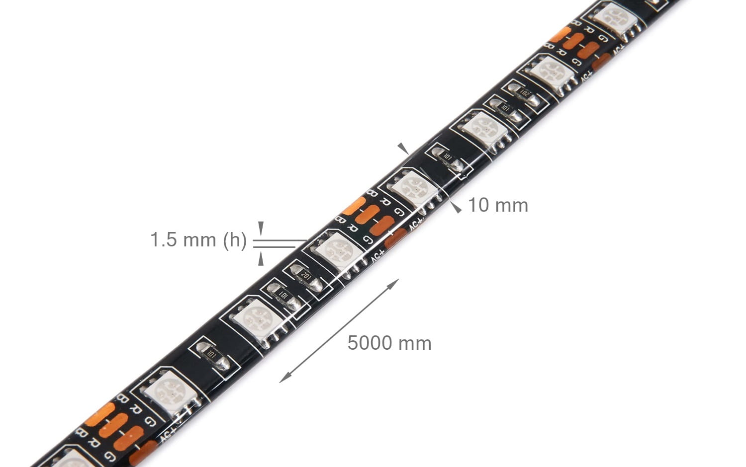 Setul este format dintr-o bandă LED cu o lungime de 5 metri, oferind suficientă flexibilitate pentru montaj și adaptare la diferite suprafețe și forme. Dimensiunile compacte ale benzii facilitează ascunderea acesteia în diferite locuri, menținând în același timp un efect de iluminat spectaculos. Dimensiunile Telecomenzii: 85x65x7 [mm] [lungime x lățime x înălțime]