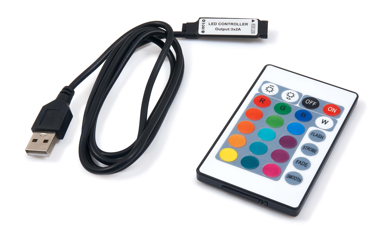 Controlerul USB este punctul central de control în setul de bandă LED 5V 3m RGB. Cu ajutorul său, puteți ajusta cu ușurință iluminatul în funcție de preferințele dvs., schimbând culorile, reglând luminozitatea și selectând diferite efecte luminoase. Telecomanda RF este o unealtă wireless care vă permite să controlați confortabil iluminatul din orice loc din încăpere.