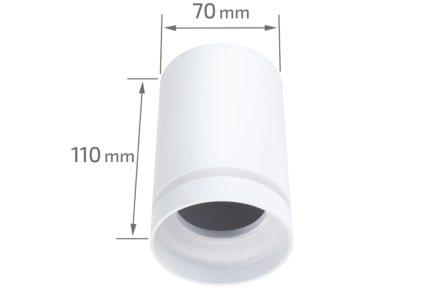 Aplica fixă halogenă de tavan LED Ring - Albă are un diametru de 70 mm, ceea ce o face compactă și nu ocupă mult spațiu pe tavan. Acest lucru permite montarea chiar și în încăperi cu spațiu limitat. Înălțimea acestei aplici este de 110 mm, un aspect care poate fi important în montaj.