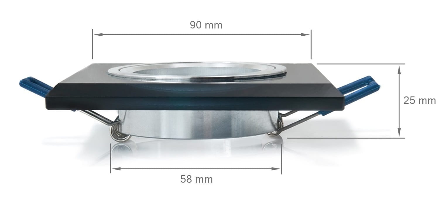Corpul de iluminat halogen îngropat fix din sticlă LED Mali - Negru are dimensiuni ideal alese, ceea ce îl face să poată fi instalat aproape oriunde, fără a ocupa spațiu prețios. Corpul de iluminat are următoarele dimensiuni: 90x90x25 [mm]. Diametrul orificiului de montaj este de 58 [mm]. Aceste dimensiuni permit, de asemenea, flexibilitate în instalare.