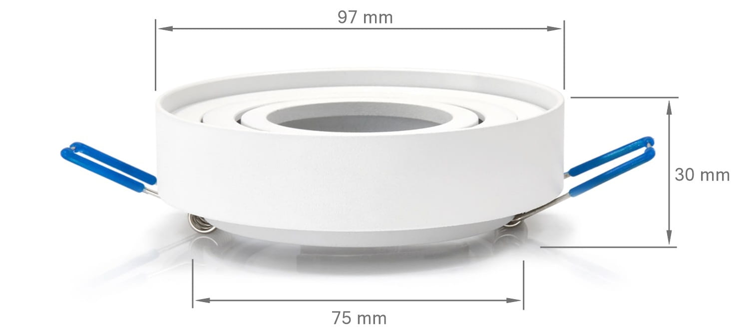 Corp de iluminat Busto Mini are un diametru compact de aproximativ 97 mm. Acest diametru redus permite o integrare discretă a corpului în diferite spații. Diametrul orificiului de montare este: 75 [mm]. Înălțimea corpului este de 30 mm. Înainte de achiziție, este recomandat să verificați dimensiunile produsului.