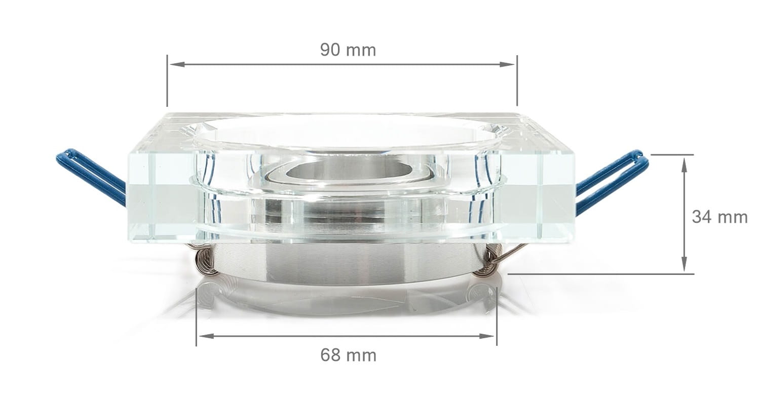 Corp de iluminat halogen are dimensiuni compacte, ceea ce îl face ideal pentru instalarea în diverse locații. Dimensiunile acestuia sunt: 90x90x34 [mm]. Diametrul orificiului de montaj este de 68 [mm]. Datorită acestor dimensiuni reduse, corpul Tami este ușor de instalat în diverse locuri și nu ocupă mult spațiu, aspect important în încăperile mici sau unde estetica joacă un rol esențial în designul interior.