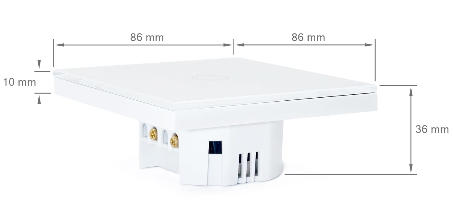Întrerupătorul de perete Bianka se remarcă prin dimensiunile sale compacte de 86 mm x 86 mm, ceea ce îl face discret și, în același timp, elegant. Construcția sa subțire asigură o instalare estetică pe perete, fără elemente proeminente. Instalarea este rapidă și simplă. Produsul nu iese prea mult în evidență.