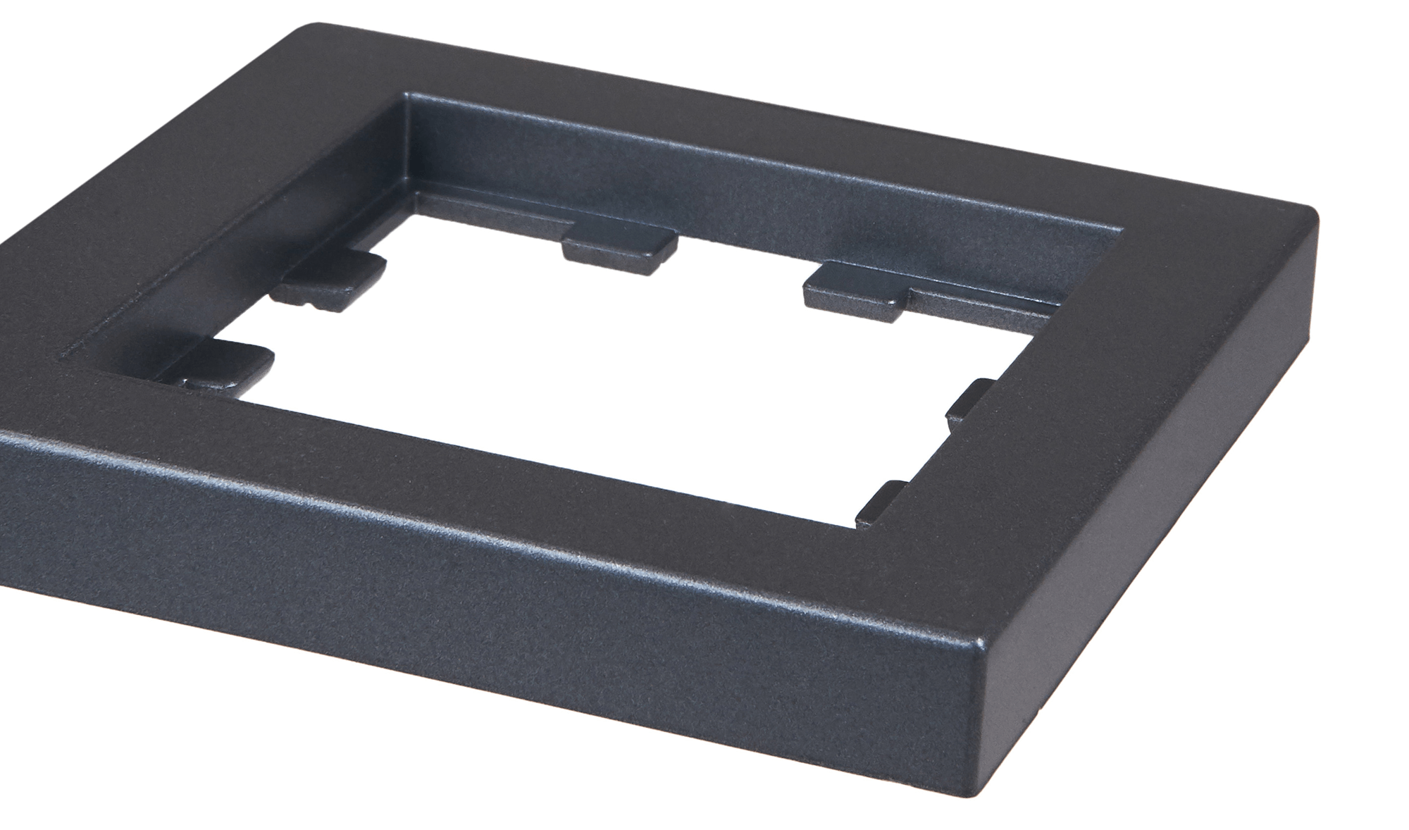 Ramă universală EV115301 de culoare antracit se potrivește perfect cu interioarele moderne de acasă și birou. Permite montarea unui modul din seria VISIO S 55, iar datorită sistemului simplu de prindere cu clipsuri, poate fi instalată rapid și fără unelte.