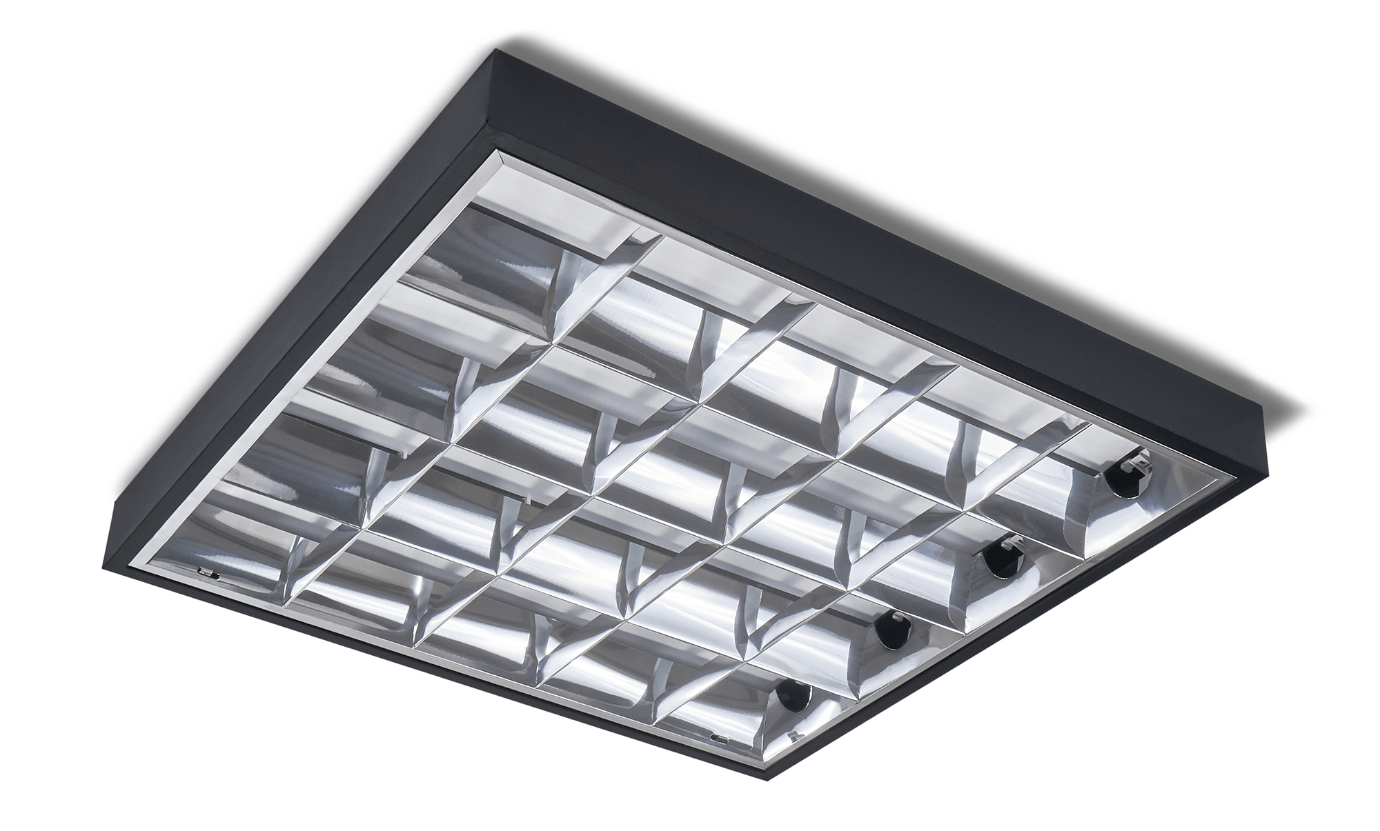Corp de iluminat LED T8 montat pe suprafață, cu dimensiuni de 600x600 mm, este o soluție modernă și eficientă de iluminat, ideală pentru diverse spații. Construcția sa elegantă, realizată din materiale durabile și rezistente la coroziune, se integrează perfect în tendințele arhitecturale actuale. Culoarea neagră a carcasei îi conferă un aspect elegant și modern, potrivit atât pentru amenajările minimaliste, cât și pentru cele mai formale. Oglinzile special proiectate asigură o dispersie uniformă a luminii, optimizând iluminarea chiar și a suprafețelor mari.