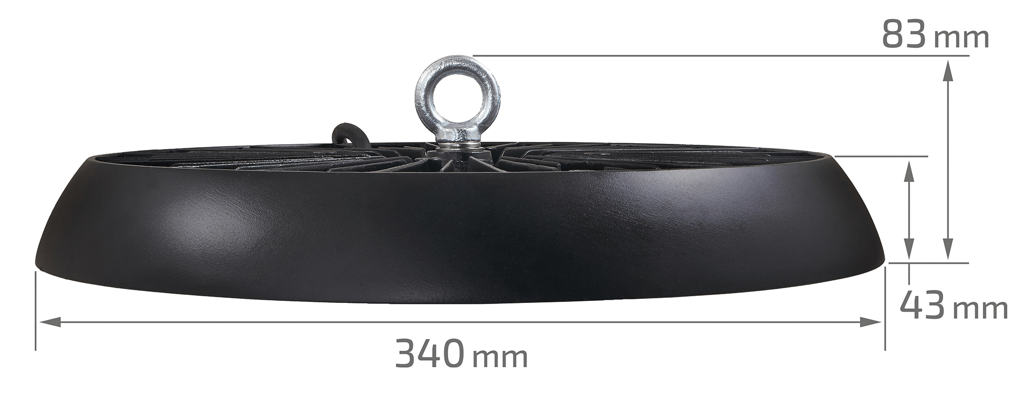 Instalarea lămpii LED High Bay UFO este simplă și intuitivă, permițând o instalare rapidă fără a fi necesare unelte specializate. Datorită designului universal, lampa poate fi montată atât pe tavan, cât și pe alte suprafețe, asigurând flexibilitate în adaptarea la diverse nevoi. Cârligul de montaj solid, care face parte din set, permite suspendarea stabilă și sigură a lămpii, iar dimensiunile compacte facilitează instalarea chiar și în spații limitate.