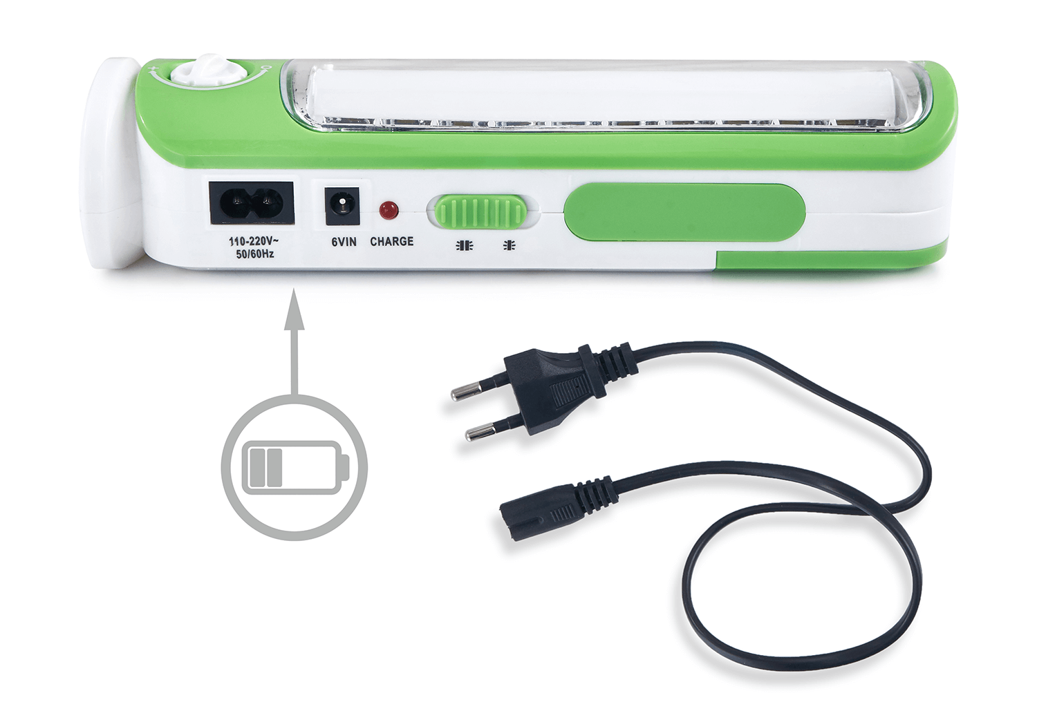 Lampa este alimentată printr-o baterie încorporată de 1400 mAh, ceea ce permite funcționarea autonomă timp de aproximativ 6 ore. Această soluție garantează mobilitatea și independența față de sursele externe de alimentare, eliminând, de asemenea, nevoia de schimbări frecvente ale bateriei. Timpul scurt de încărcare, de doar 30 de minute, minimizează întreruperile în utilizarea lanternei, ceea ce este esențial în situații care necesită iluminare continuă.