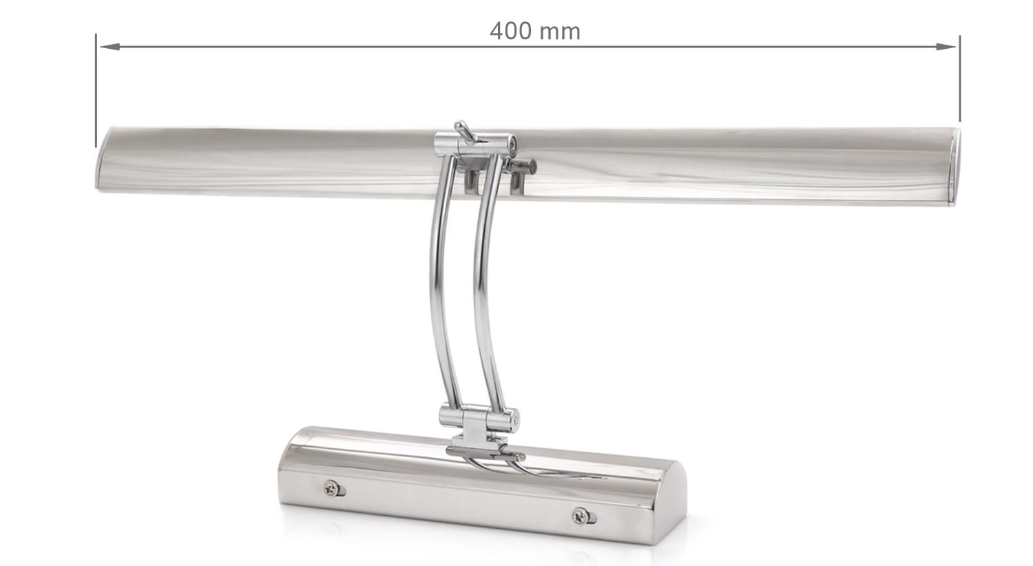 Dimensiunile aplicii de baie Tala sunt: Deschidere: 400 [mm]. Lungimea de 400 mm asigură iluminarea uniformă a zonei pe care dorește să o ilumineze, fără să ocupe prea mult spațiu pe perete. Aceste dimensiuni fac ca aplica să fie compactă și ușor de montat în diferite spații.