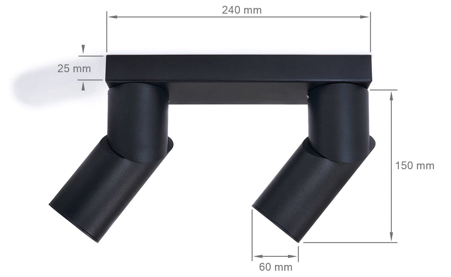 Dimensiunile bazei acestei monturi sunt: 240x60x25 [mm]. Dimensiunile tubului: φ60x150 [mm]. Înainte de a cumpăra, este bine să măsurați exact locul în care planificați să montați lampa, pentru a vă asigura că aceasta va avea dimensiunile potrivite și nu va domina sau se va pierde în spațiul respectiv.