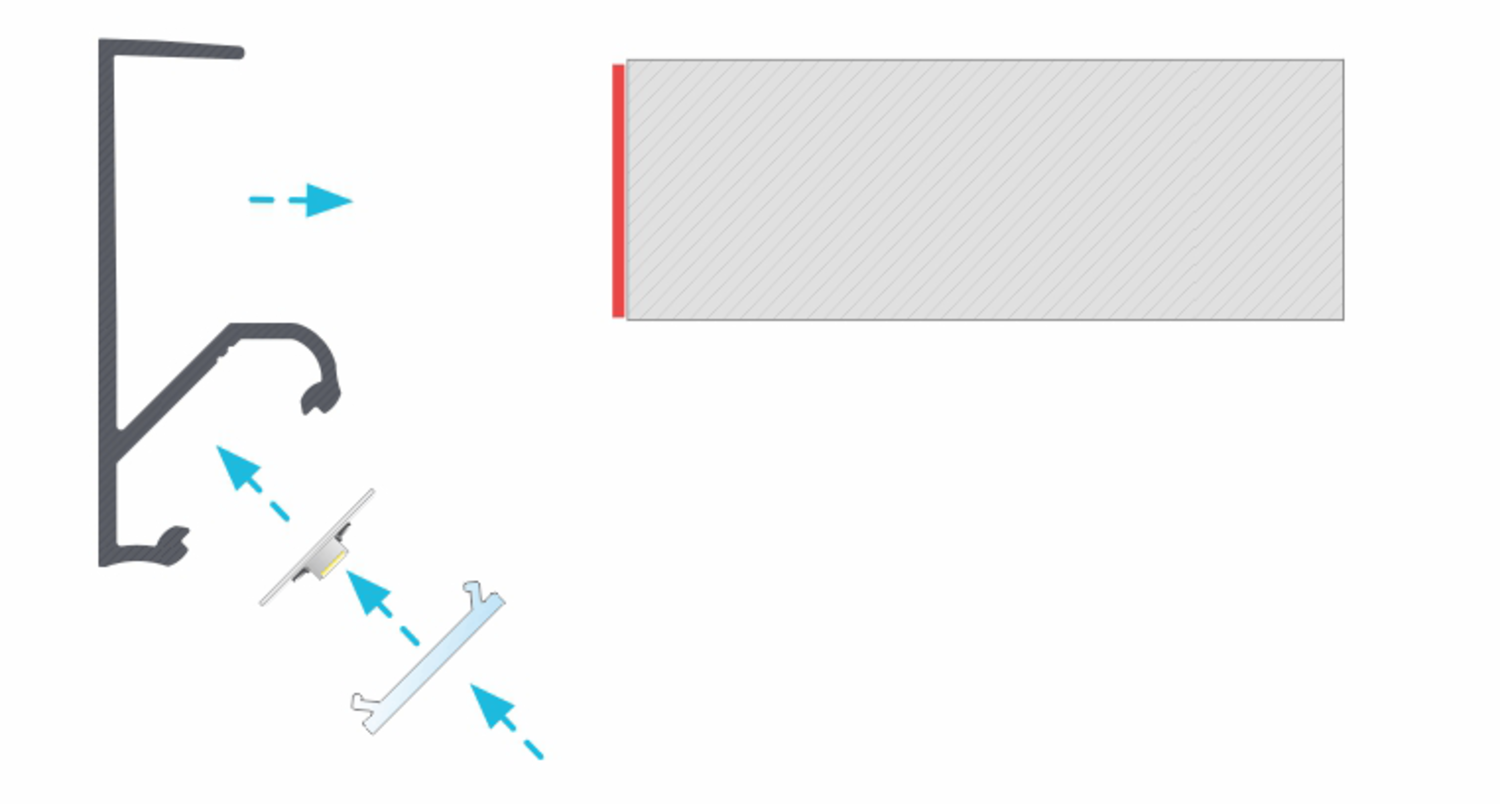 Montarea profilului este rapidă și ușoară, utilizând accesorii de montaj speciale, cum ar fi banda adezivă dublu-sided sau adezivul de montaj. Acest produs poate fi montat pe orice suprafață plană, inclusiv pe pereți, tavan sau mobilier.