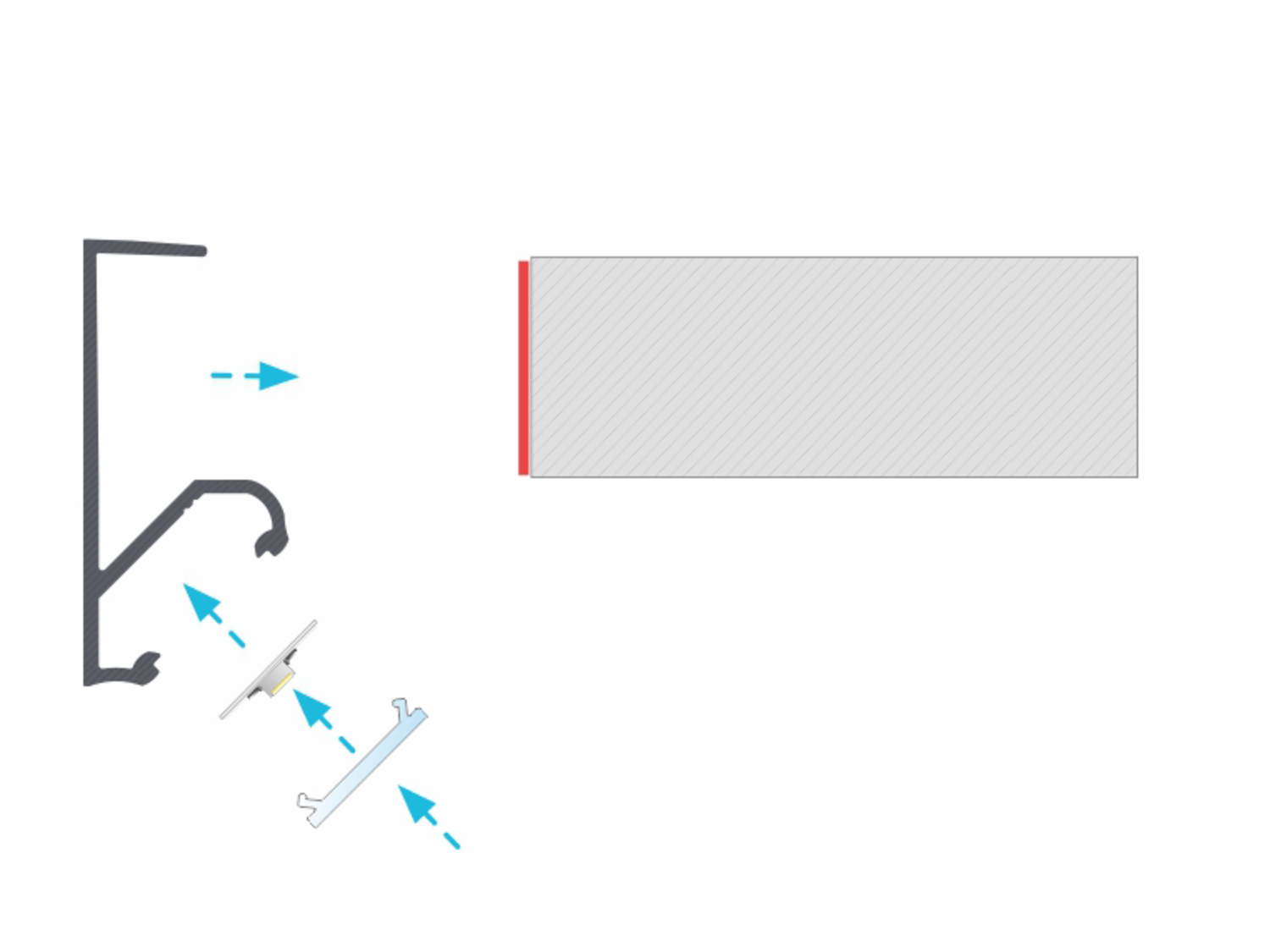 Montarea profilului este intuitivă și nu necesită abilități speciale, utilizând accesorii precum banda adezivă dublu-sided sau adezivul de montaj. Profilul poate fi montat cu ușurință pe diverse suprafețe plane, inclusiv pe pereți, tavan sau mobilier.