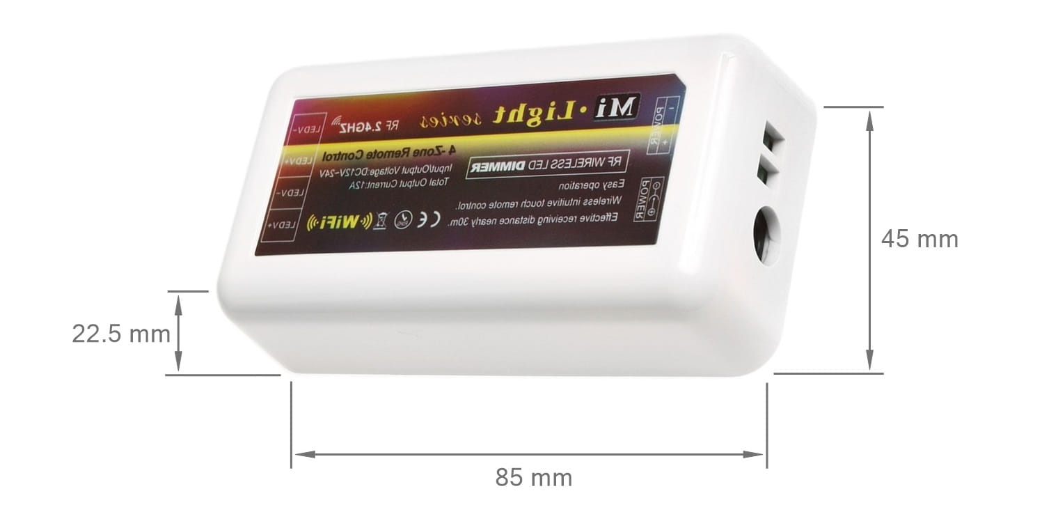 Controlerul și telecomanda se remarcă prin dimensiunile lor compacte, ceea ce permite instalarea și depozitarea lor cu ușurință. Dimensiunile lor reduse le permit să fie ascunse cu ușurință, fără a afecta estetica interiorului. Dispozitivul este compatibil cu majoritatea benzilor LED monocromatice disponibile pe piață, ceea ce îl face o alegere versatilă pentru orice proiect de iluminat.