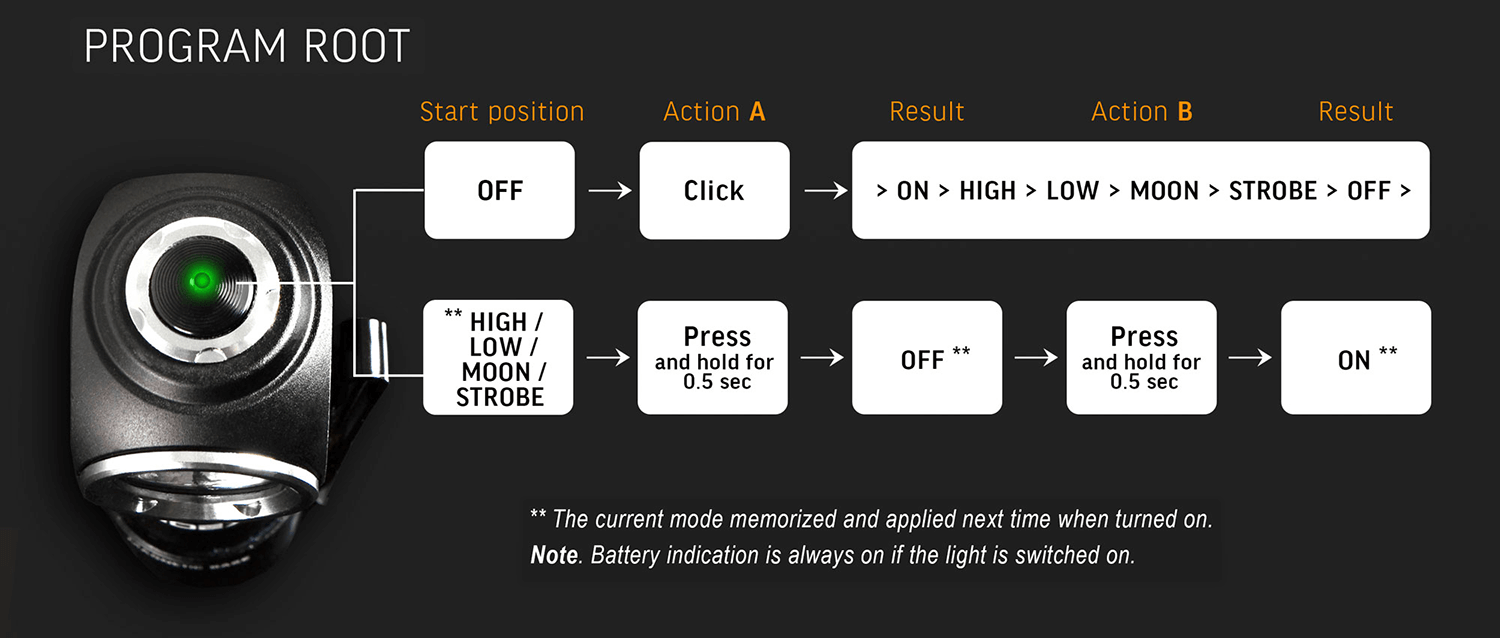 Echipată cu un buton tactil comod, lanterna oferă o utilizare intuitivă. Apăsarea scurtă a butonului nu numai că porneste lumina, ci și permite comutarea între diferite moduri de iluminare. Apăsarea lungă a butonului când lumina este pornită permite oprirea lanternei. În schimb, apăsarea lungă a butonului când lumina este stinsă permite activarea imediată a modului utilizat ultima dată.