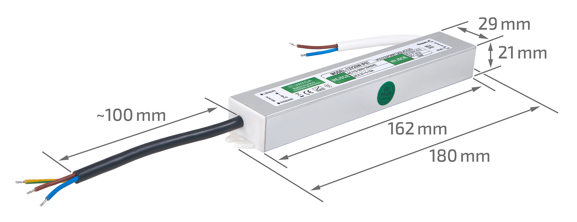 Sursă de alimentare modulară: Tensiunea de intrare 110-260 V | Tensiunea de ieșire 12 V | Putere nominală 20 W | Intensitatea ieșirii 1.66A | Gradul de protecție IP67